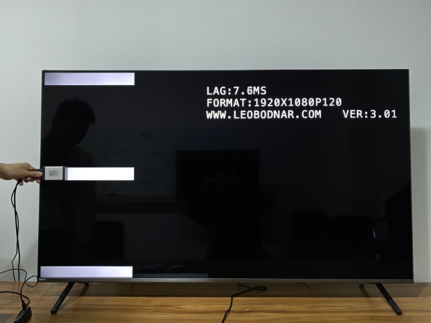 電視的2個HDMI 2.1 可以確保同時持有 Xbox Series X|S 和 PS5(如果你財力雄厚或者運氣夠好)的玩家免去反覆拔插線材的煩惱。根據官方表述,G1系列電視在顯示延遲方面控制得相當好,其中 60Hz 信號下延遲低於16ms,120Hz刷新率延遲低於7ms。這部分我們也進行了實際測試,通過實體設備進行初步測試,可以看到1080P之下開啟120Hz,電視中部區域延遲在7.6ms(頂部4.4ms,底部11.4ms)。