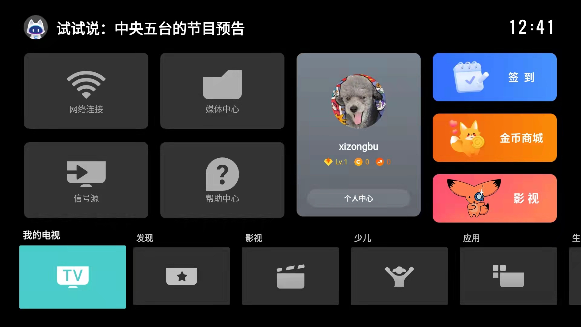電視開機後首先是一個飛利浦的 LOGO,沒有廣告,隨後直接進入系統界面。飛利浦遊戲電視G1 Pro 的操作系統分為幾個大的頂級 Tab,在畫面下方橫向排列,日常用戶可以在【我的電視】【應用】【影視】等功能下選擇對應的服務或者 App。影音方面,大家所熟悉的影音等類別的 App 都可以在商城中看到,下拉後能看到詳情頁,日常在商城中搜索不到的 App 也可以通過 U盤安裝apk文件。
