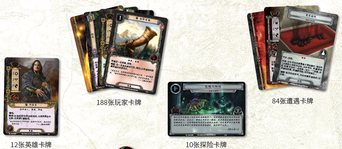 《魔戒:卡牌游戏》中我们所熟悉的人物、地点、物品、武器,都会登场,加上FFG看家的美术功底加持,让游戏充满了代入感,一局下来仿佛刚刚真就置身于中土大地之上。