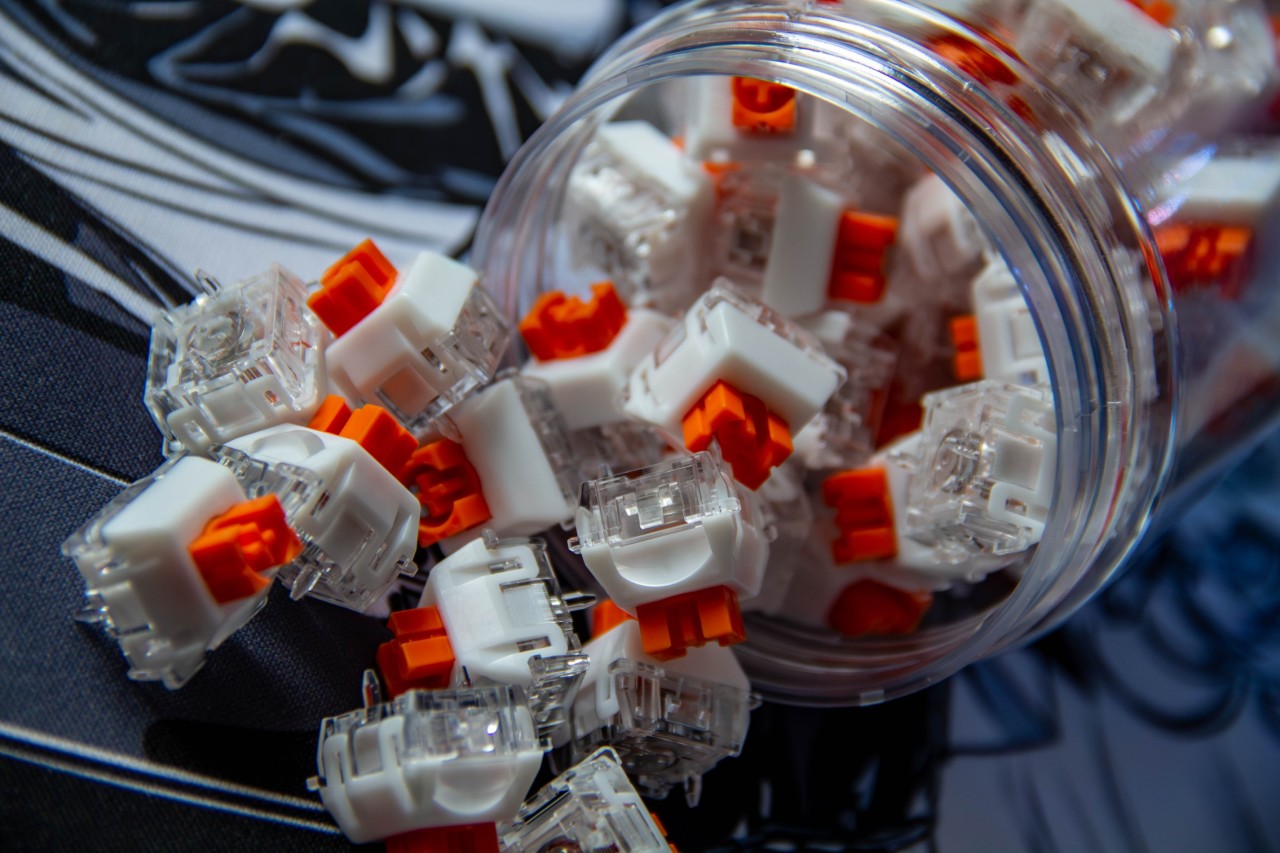 看看装在键盘上的效果,像一颗颗橘子味的果冻。