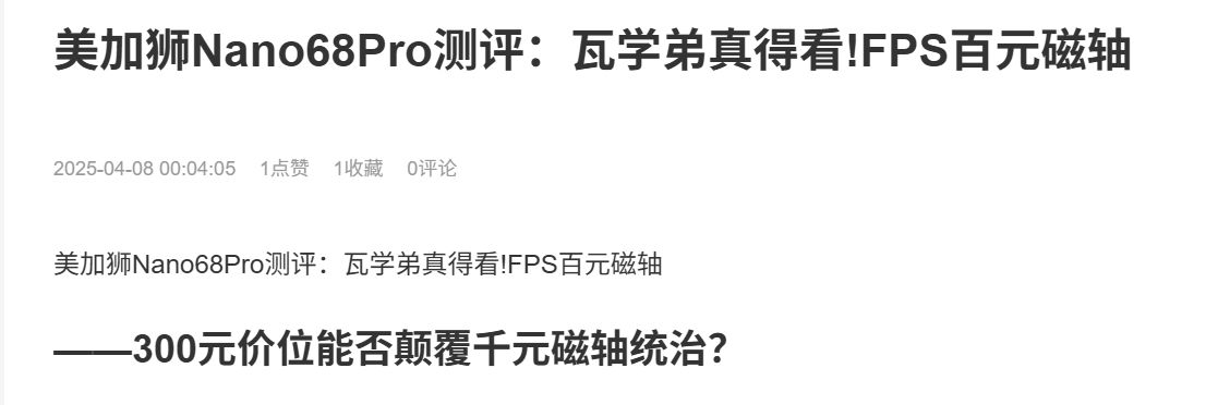 美加狮nano68系列新版本来袭!幻神轴助你上分!